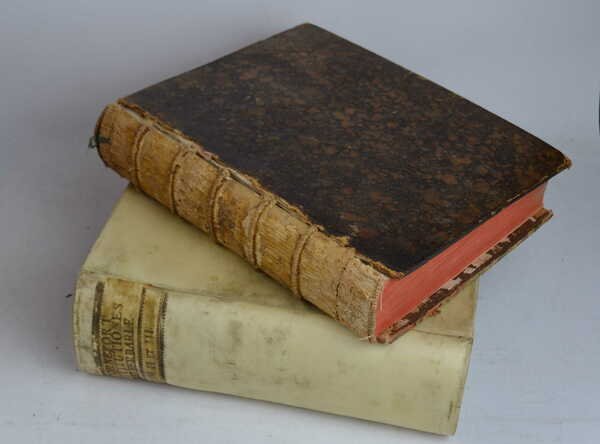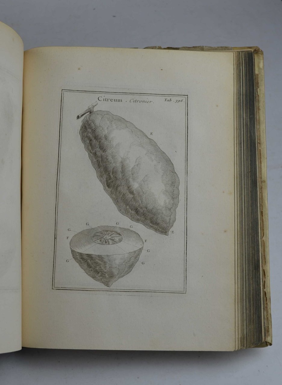 Tre parti in due volumi di cm. 24, di cui uno di testo di pp. (6) xxxii (16) 695 (9) 58 con testate e capolettera; seguono due parti in un volume di tavole con belle antiporta figurate e 489 tavole incise in rame. Copia composita in cui il volume di testo possiede una legatura in pelle con dorso mancante e piatti staccati, mentre il volume di tavole ha una bella e solida legatura coeva in piena pergamena rigida con titoli impressi al dorso. Solo qualche alone limitato al margine dell ultime 4/5 carte del volume di testo ed un timbro di scuola tedesca al frontespizio del volume di tavole, peraltro esemplare genuino, fresco e ben conservato. Terza, apprezzata edizione di questa celebre compilazione botanica, ampliata rispetto alle precedenti del Corollarium e di alcune tavole. Cfr. Pritzel 8428.