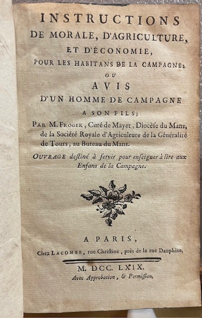INSTRUCTIONS DE MORALE, D'AGRICOLTURE, ET D'ECONOMIE, POUR LES HABITANS DE LA CAMPAGNE, OU AVIS D'UN HOMME DE CAMPAGNE A SON FILS.
