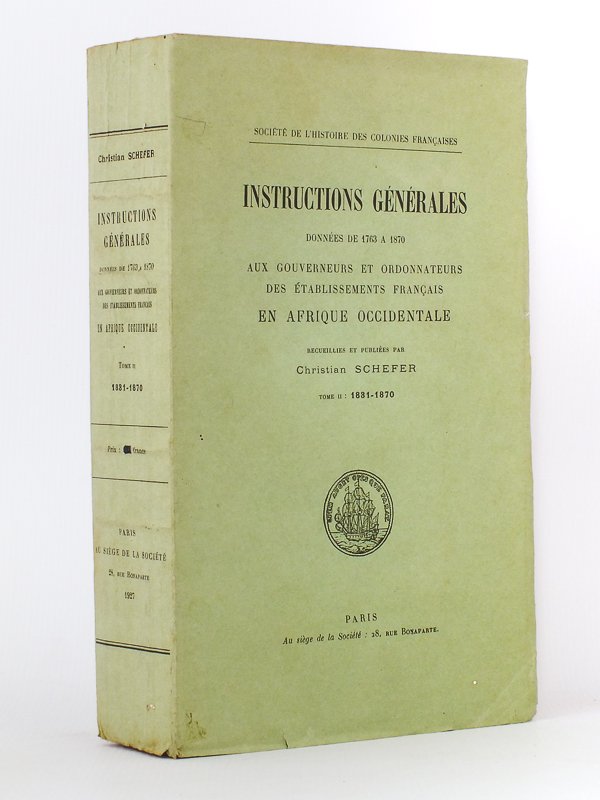 Recueillis et publiés par Louis Schefer, 1 vol. fort in-8 br., Au siège de la Société de l'Histoire des Colonies Françaises, Paris, s.d., 1927, IX-685 pp. Tome 2 seul. Bon état (lég. rouss. sur tranches, bel exemplaire par ailleurs).