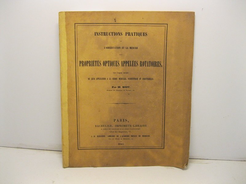 Instructions pratiques sur l'observation et la mesure des propriete's optiques appele'es rotatoires avec l'expose' succint de leur application a la chimie medicale, scientifique et industrielle