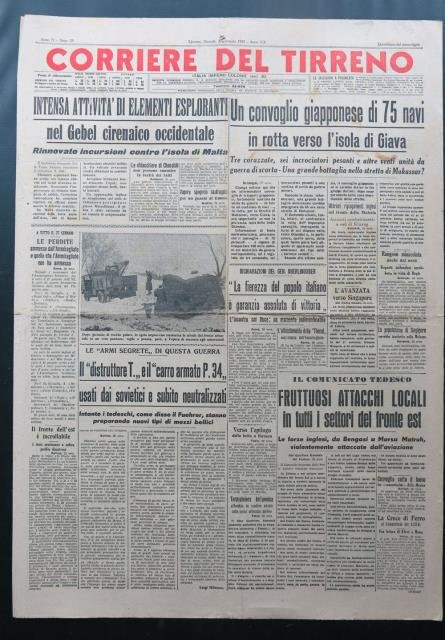 Intensa attivita di elementi esploranti nel Gebel cireanico occidentale / Un convoglio giapponese di 75 navi in rotta verso l'isola di Giava.