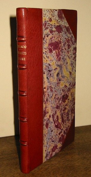 8vo (cm. 19,3), 68 pp., 6 cc.nn. di annunci editoriali. Frontespizio in rosso e nero con cornice tipografica e marca editoriale. Fregi e capilettera ornati. Legatura in mz. marocchino bordeaux con angoli. Nervi, fili e titolo impresso in oro al ds. Edizione originale. Lievi fioriture ma ottimo esemplare. De Medici, 11; Guabello, 16; Vecchioni, 7.