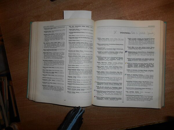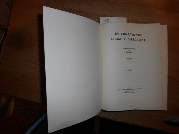 Editor: A.P. WALES. Publishers: London, The A.P. WALES, 1968. International Library Directory. Third Edition 1969/70. In-8°, tela edit. con titoli in oro. 1222 pp. Ottimo esemplare ma con alcune note a matita e numerosi tondini colorati a margine. Testo in inglese. Uff. C - II - 4