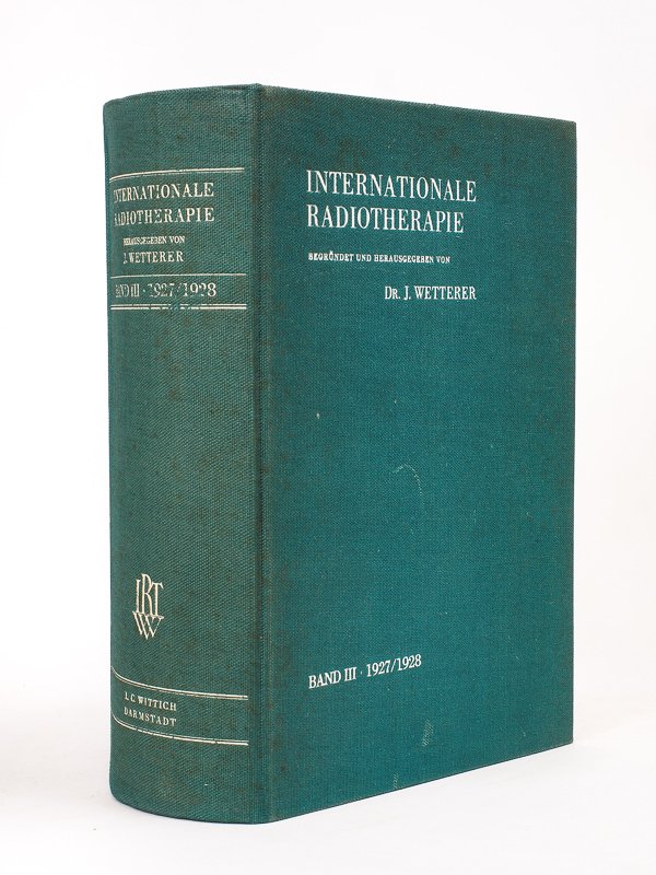 Internationale Radiotherapie. Besprechungwerk auf dem Gebiete dre Röntgen-, Curie-, Licht- und Elektrotherapie, bregrundet und herausegeben von J. Wetterer-Mannheim, 1 vol. fort in8 relié pleine toile verte éditeur, L. C. Wittich Verlag / Darmstadt, 1928, 1352 pp. Etat très satisfaisant. The second volume (Band II) is available. Scarce