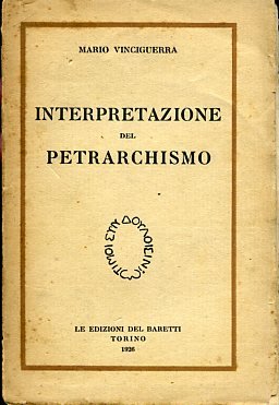 In-16° grande, pp. 111, (5), brossura editoriale riquadrata con titolo e logo gobettiano, il motto greco, disposto circolarmente, 'Ti moi sun douloisin;', 'Che cosa ho io a che fare con gli schiavi?', implicito riferimento alla dittatura fascista. Dedica a stampa alla memoria di Piero Gobetti, da poco spentosi a Parigi. Sparse sottolineature a matita rossa e azzurra. Minimi restauri al dorso. Prima edizione. Tracciato dell'evoluzione del petrarchismo nelle nostre lettere, sino agli echi petrarcheschi che essi ancora registrano nel secolo decimonono. Il Vinciguerra (Napoli, 1887-Roma, 1972), storico, critico, giornalista e scrittore, fu discepolo e sodale di Benedetto Croce. Accame Lanzillotta, n. 98.