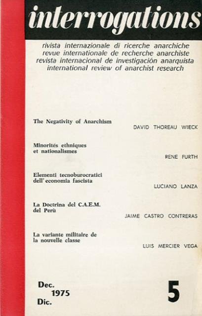 Interrogations n. 5 (dic. 1975). Revue internationale de recherche anarchiste = rivista internazionale di ricerche anarchiche = revista internacional de investigacion anarquista = international review of anarchist research.