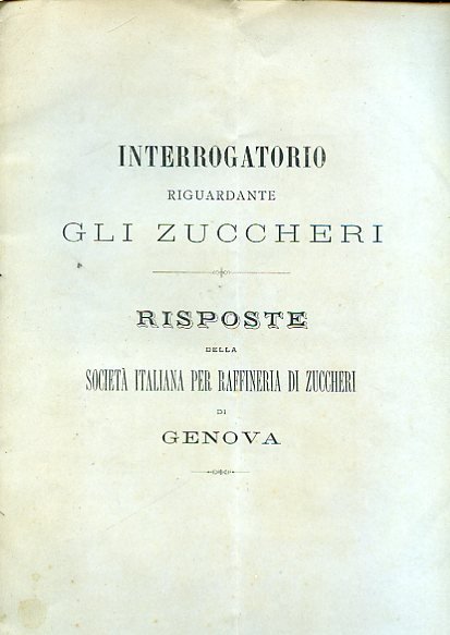 Interrogatorio riguardante gli zuccheri. Risposte della Società Italiana per Raffineria di Zuccheri di Genova