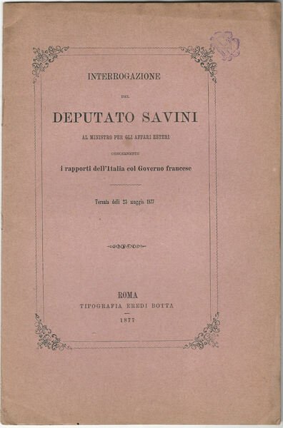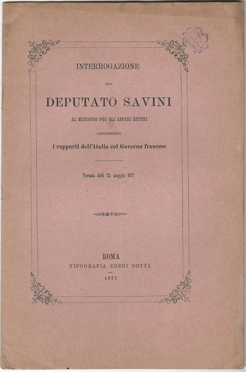 Interrogazione del deputato Savini al ministro per gli affari esteri concernente i rapporti dell'Italia col Governo francese.