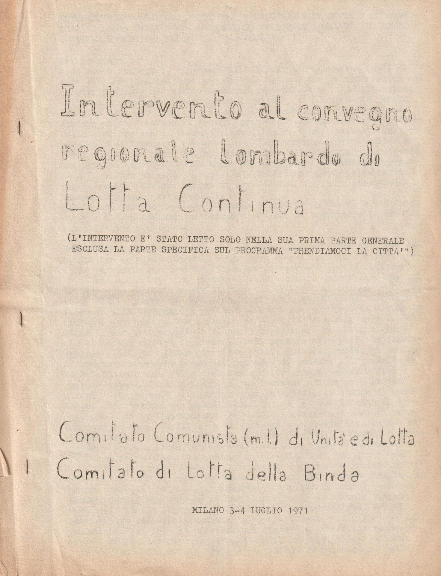 Intervento in merito al convegno di Lotta Continua "<em>Prendiamoci la città</em>" del 3-4 luglio 1971