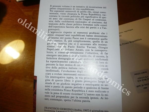DESCRIZIONE: Mursia Milano br. ed. ill. con risvolti pp. 133. Indice del vol. a fine inserzione. Il libro è un tentativo di ricostruzione del primo cinquantennio di vita repubblicana, con interviste a chi ha fatto parte della Prima Repubblica . CONDIZIONI DELL'OGGETTO: Perfette. PESO/WEIGHT: 262 g without package