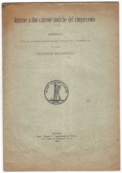 Intorno a due canzoni storiche del cinquecento. Memoria.