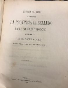 INTORNO AL MODO DI DIFENDERE LA PROVINCIA DI BELLUNO DALLE INVASIONI TEDESCHE.SCRITTA NELLA PRIMA META’ DEL SECOLO XVI
