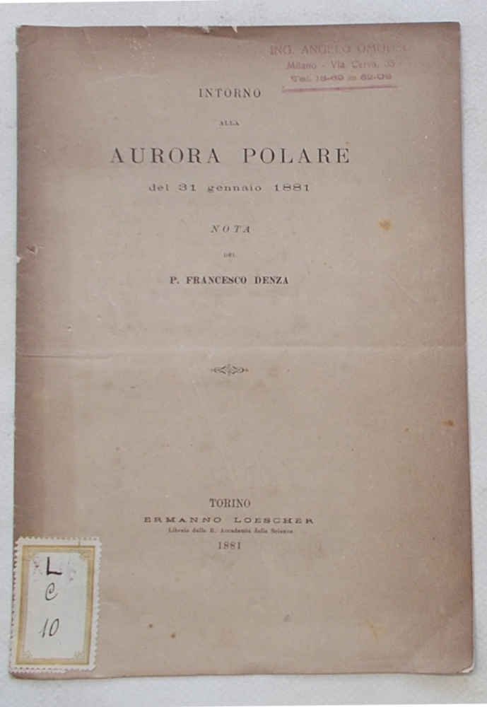 In 8° (cm. 23,5 x 15,5); pagg. 8; leggera cartonatura origin. Timbro e piccola ertichetta di proprietà. VG-. ** Estratto origin.