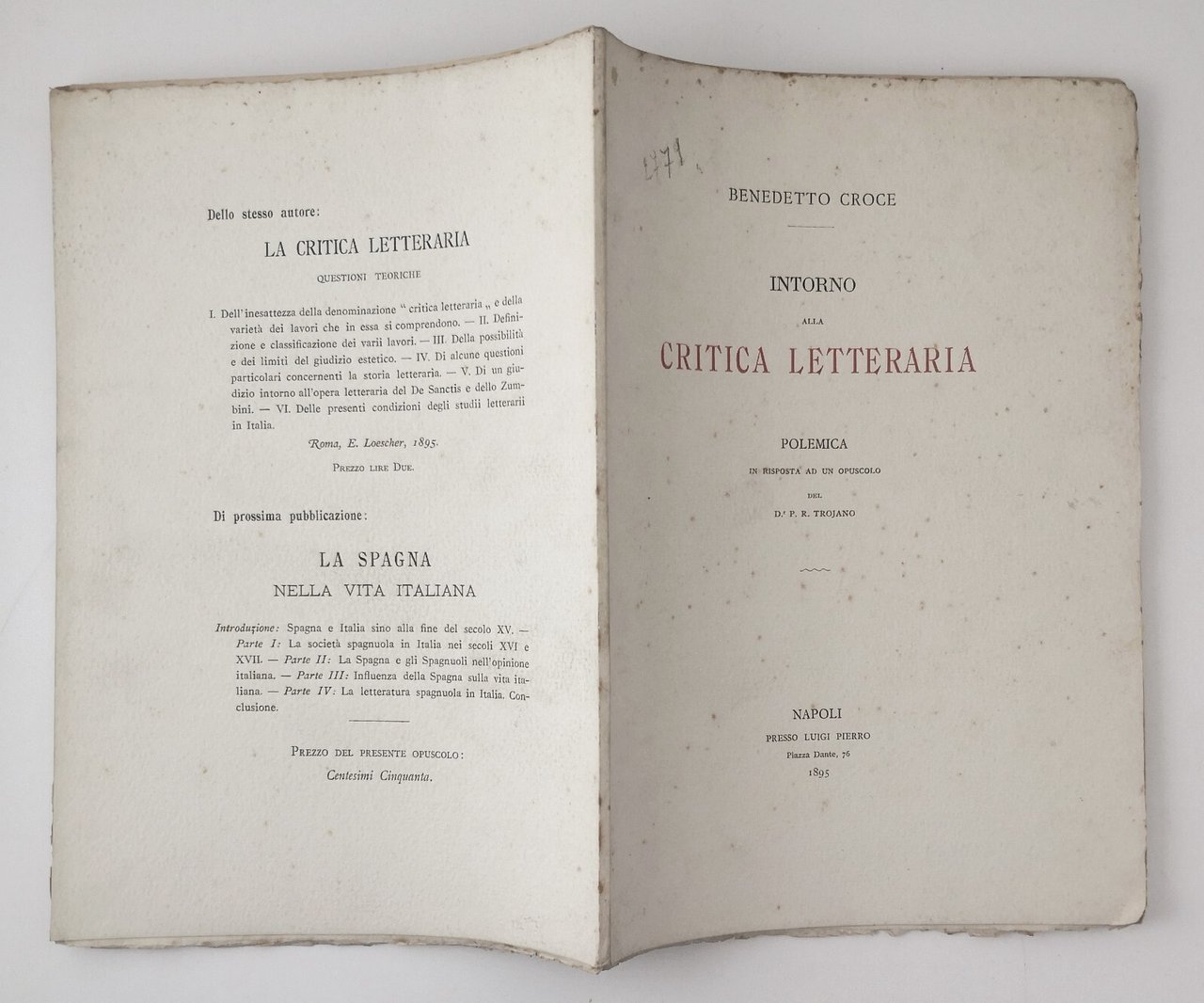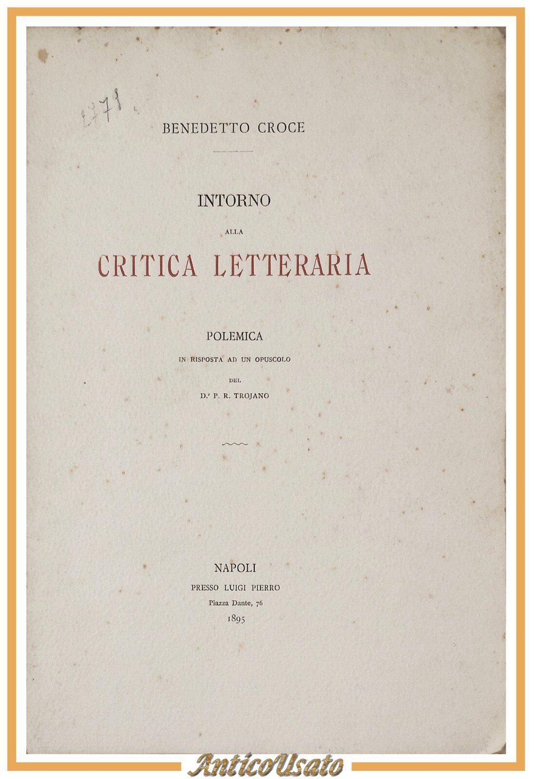 INTORNO ALLA CRITICA LETTERARIA polemica di Benedetto Croce 1895 Pierro Libro