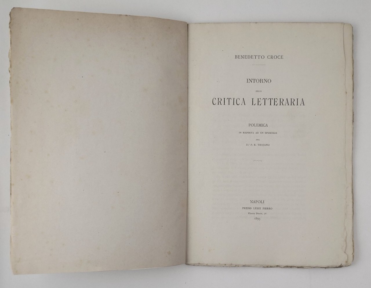 INTORNO ALLA CRITICA LETTERARIA di Benedetto Croce. Polemica in risposta ad un opuscolo del Dr. P. R. Trojano.
