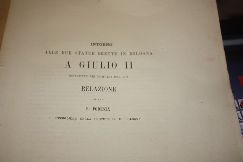 INTORNO ALLE DUE STATUE ERETTE IN BOLOGNA A GIULIO II DISTRUTTE NEI TUMULTI DEL 1511 RELAZIONE DEL CAV.B.PODESTA CONSIGLIERE NELLA PREFETTURA DI BOLOGNA