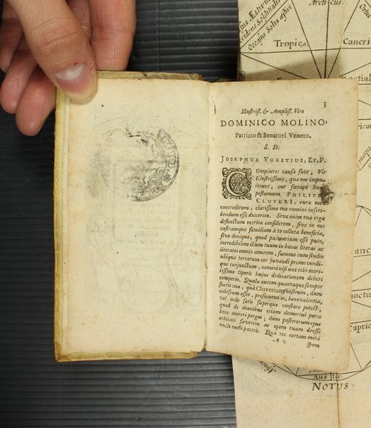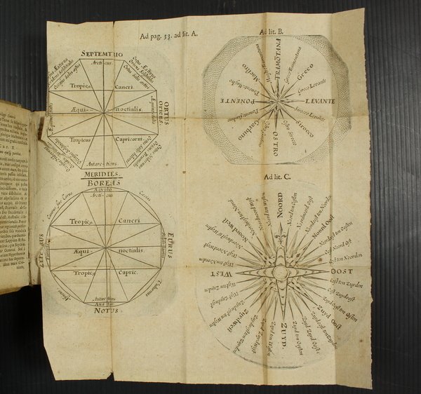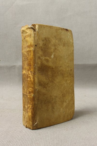 In-24ø; 352 pp., 79 pp., una tabella e una carta pi— volte ripiegata; legatura coeva in tutta pergamena, titolo manoscritto al dorso. Frontespizio inciso. Forellino alle pp. 155-58 con perdita di qualche lettera, strappetti alla tavola. Manuale geografico, con ampi riferimenti anche all?Estremo Oriente e all?America. Willems 1242.