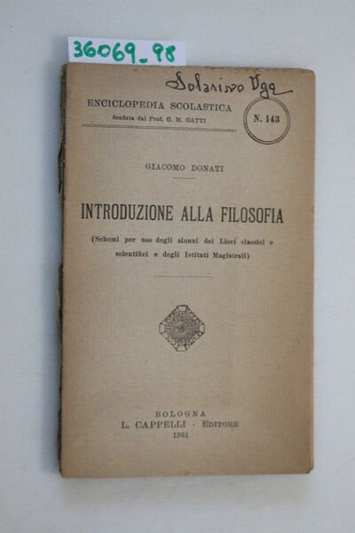 (Collana : Enciclopedia Scolastica fondata dal Prof. G.M.Gatti) Schemi per uso degli alunni dei Licei classici e scientifici e degli Istituti Magistrali - DETTAGLIO DELLE CONDIZIONI : pagine slegate e ingiallite - (1.X.8).