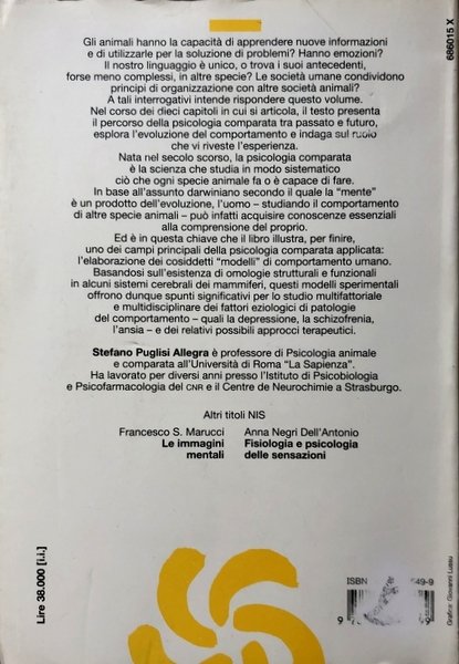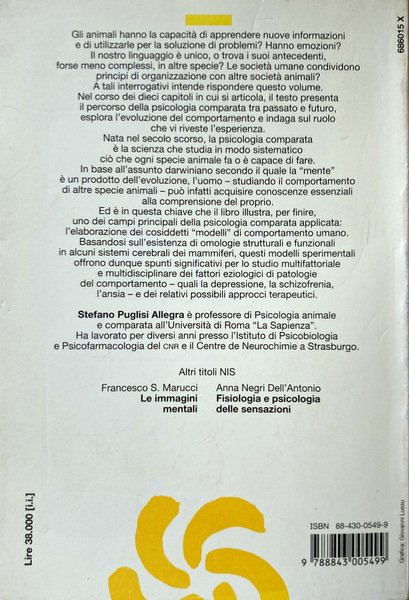 Ed è in questa chiave che il libro illustra, per finire, uno dei campi principali della psicologia comparata applicata: l'elaborazione dei cosiddetti "modelli" di comportamento umano. Basandosi sull'esistenza di omologie strutturali e funzionali in alcuni sistemi cerebrali dei mammiferi, questi modelli sperimentali offrono dunque spunti significativi per lo studio multifattoriale e multidisciplinare dei fattori eziologici di patologie del comportamento - quali la depressione, la schizofrenia, l'ansia e dei relativi possibili approcci terapeutici.