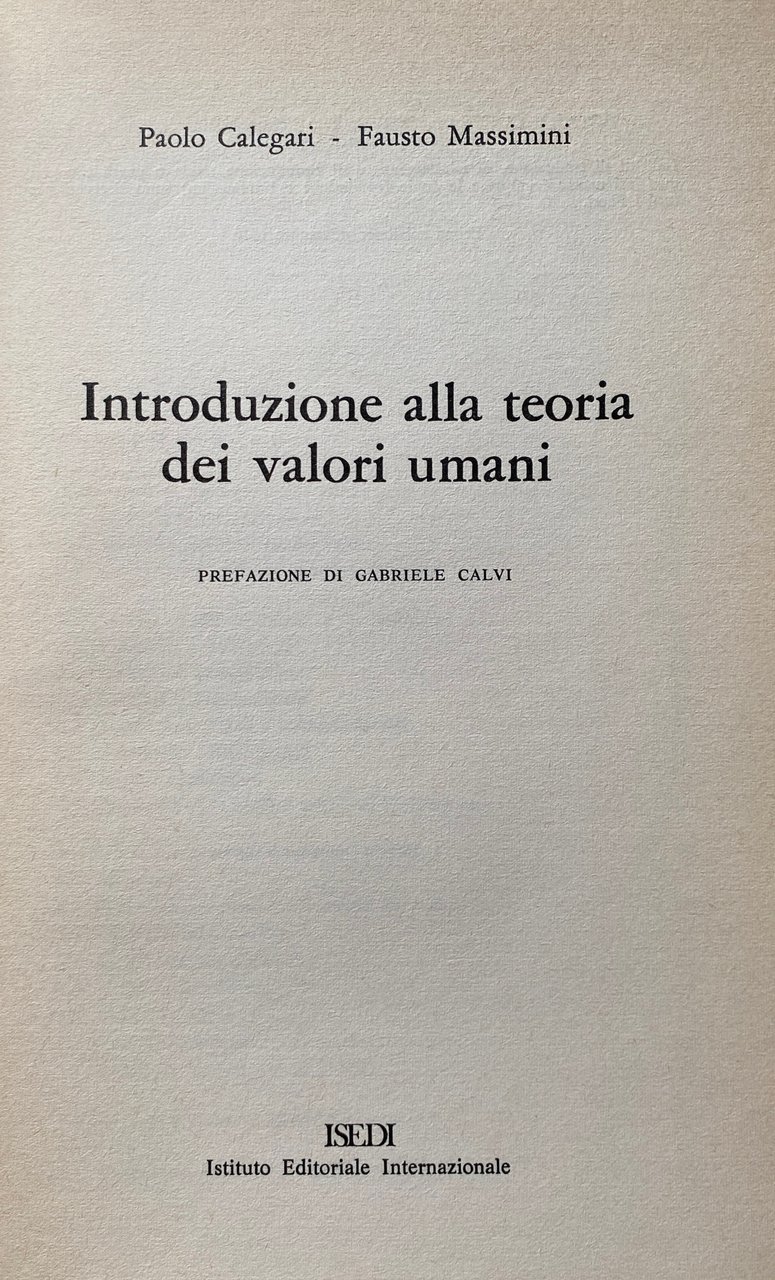 INTRODUZIONE ALLA TEORIA DEI VALORI UMANI