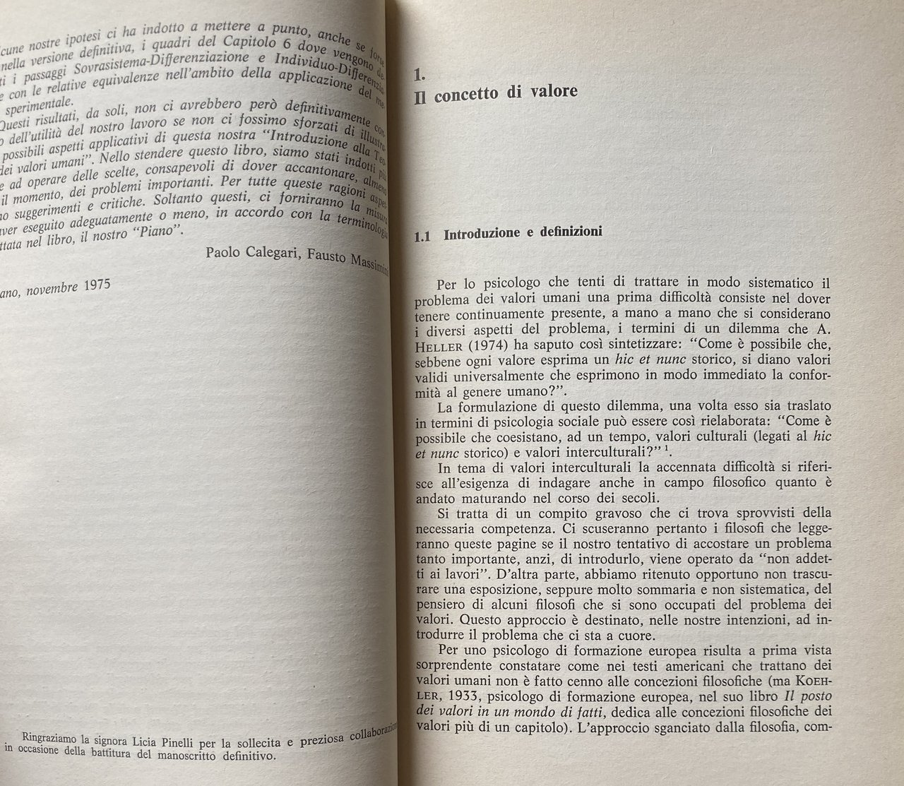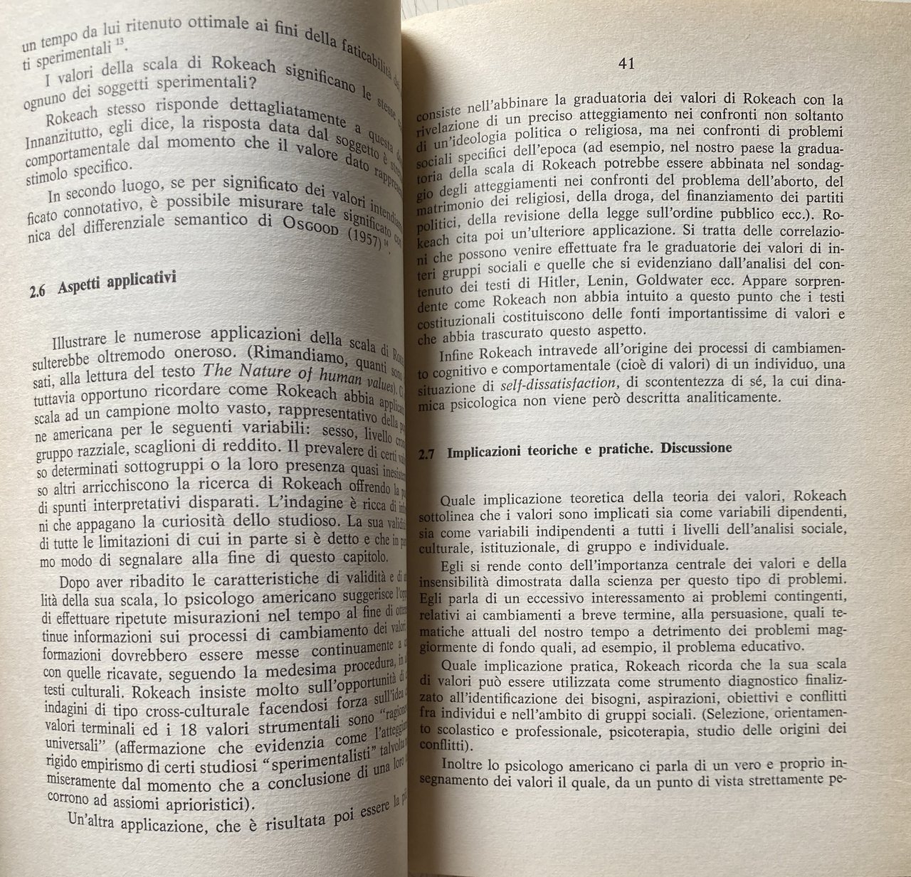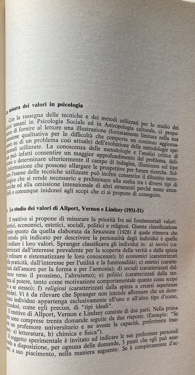 Soggetti: Scienze sociali, Psicologia sociale, Milton Rokeach, Teoria dei valori umani, Politica, Democrazia, Formazione, Educazione, Filosofia, Interazioni, Relazioni, Linguaggio, Conflitti, Sistemi viventi, Comportamento, Marketing, Sociologia, Antropologia, Teorie sociologiche, Studi culturali, Bibliografia, Riferimento, Saggistica, Libri vintage rari fuori catalogo, Critica testuale, Tassonomia Schwartz Artefatto normativo Etica Bioetica Selezione psicologica umana Eteropoiesi Complessità Costituzione italiana Albert Schweitzer Artefatti Autopoiesi Azioni base Bisogni Capacità Cittadini Cognitivismo Cognitivo Comunicazione Concetto Contratto Cooperazione Differenziazione Diritto Entropia Funzione giuridica Identificazione Individui Informazione Interrelazioni Istruzioni comportamentali J.G. Miller Hans Kelsen Laszlo Legge fondamentale legislatore libertà Maturana Varela Neghentropia Norme Obiezione di coscienza Oggettivazione Principio Proprietà Rapporti sociali Rawls Rispetto Significato Sistema osservante Situazioni problematiche Società Sovrasistema Struttura Sviluppo Teleologia Diritti fondamentali Psychologie historique Ignace Meyerson Modello etogenico Harré Secord Morale Francesco Orestano Kant Ehrenfels Albrecht Ritschl Lipps Meinong Luigi Sturzo Altruismo Durkheim Weber Potere Parsons Scala Dogmatismo Studenti Value Survey Atteggiamenti Opinioni Classifica relativa Appartenenza Contraddizioni Controllo Differenze effetti impiegato Uguaglianza Libertà Esperimenti Risultati Gruppi Misura media Maggioranza Mediana NAACP Sicurezza nazionale Obbedienza Percezione Posizione Preferenze Test Campione Insoddisfazione mostrata Università Set Disvalori Dinamiche Sondaggi Von Bertalanffy Miller Galanter Pribram Uznade Heller Delay Pichot Massucco Costa Hollander English Cooper McGaugh Summer Newell Shaw Kelman Maslow McLaughlin Anni Settanta Emotional response Havighurst Neugarten Bruner Interpretazione Allport Lindzey Biscaretti Di Ruffia Noam Chomsky Arnheim Bergson Adorno Feather Festinger Lapassade Kluckhohn Lewin Lorenz Piaget Universalismo Conformismo Successo Conformismo Stimolazione Sfida Tradizione Autodirezione Social sciences Psychology Theory of human values Politics Democracy Training Education Philosophy Interactions Relationships Language Conflicts Living systems Behavior Sociology Anthropology Sociological theories Cultural studies Bibliography Reference Non-fiction Rare books out of print Textual criticism Taxonomy Normative artefact Ethics Bioethics Human psychological selection Heteropoiesis Complexity Italian Constitution Artifacts Autopoiesis Actions basis Needs Ability Citizens Cognitivism Cognitive Communication Concept Contract Cooperation Differentiation Law Entropy Legal function Identification Individuals Information Interrelationships Behavioral instructions Fundamental law legislator freedom Negentropy Norms Conscientious objection Objectification Principle Property Social relations Respect Meaning Observing system Problematic situations Society Supersystem Structure Development Teleology Fundamental rights Estrogenici model Altruism Power Scale Dogmatism Students Attitudes Opinions Relative ranking Membership Contradictions Control Differences Employee effects Equality Freedom Experiments Results Groups Average size Majority Median National security Obedience Perception Position Preferences Sample Dissatisfaction shown University Disvalues Dynamics Surveys 1970s Interpretation Universalism Conformism Success Conformism Stimulation Challenge Tradition Self-direction