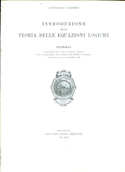 Introduzione alla teoria delle equazioni logiche. Memoria presentata alla Classe di Scienze Morali della R. Accademia delle Scienze dell'Istituto di Bologna nella Sessione del 27 dicembre 1934