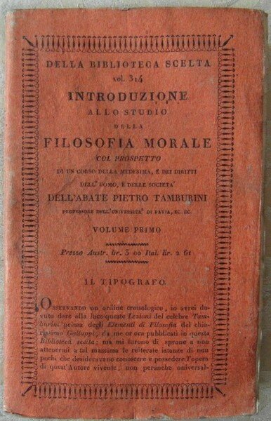 INTRODUZIONE ALLO STUDIO DELLA FILOSOFIA MORALE. VOLUME I.