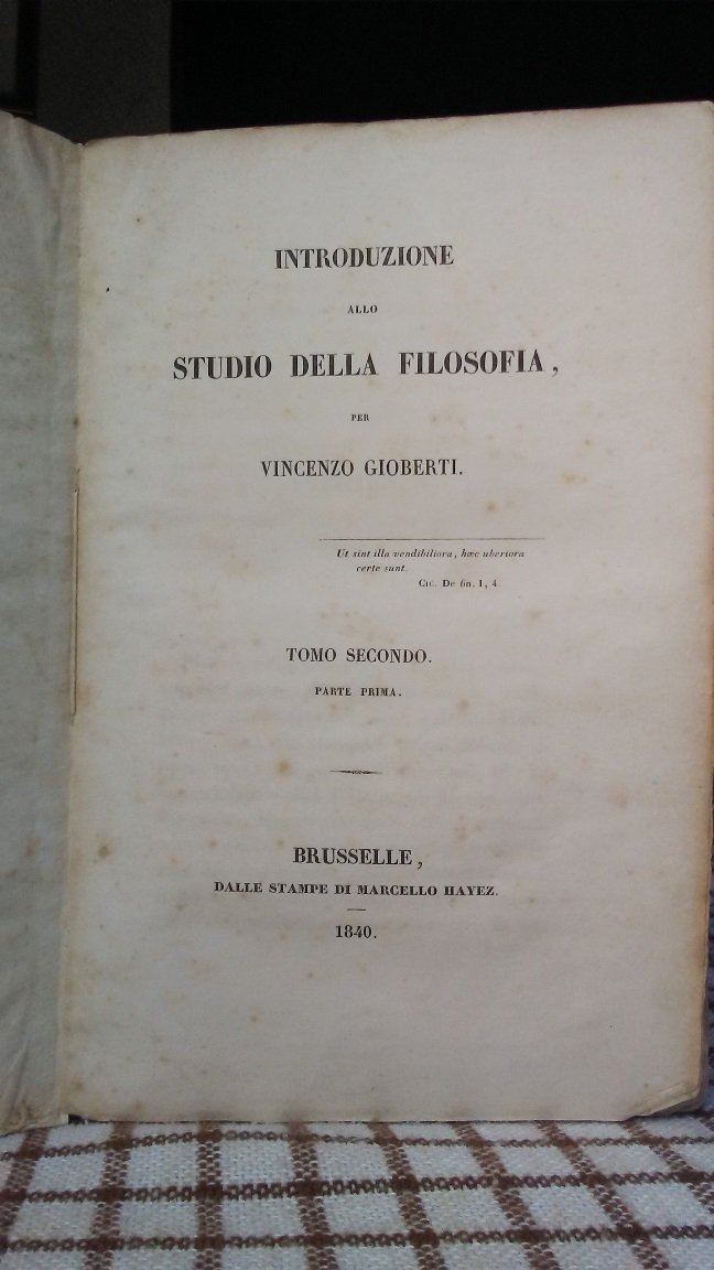 INTRODUZIONE ALLO STUDIO DELLA FILOSOFIA Tomo Secondo, Parte I e II.
