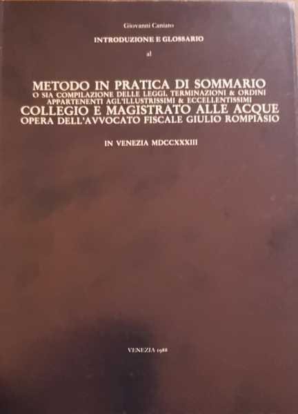 INTRUDUZIONE E GLOSSARIO AL "METODO IN PRATICA DI SOMMARIO, O SIA COMPILAZIONE DELLE LEGGI, TERMINAZIONI, ED ORDINI APPARTENENTI AGL'ILLUSTRISSIMI ED ECCELLENTISSIMI COLLEGIO ...