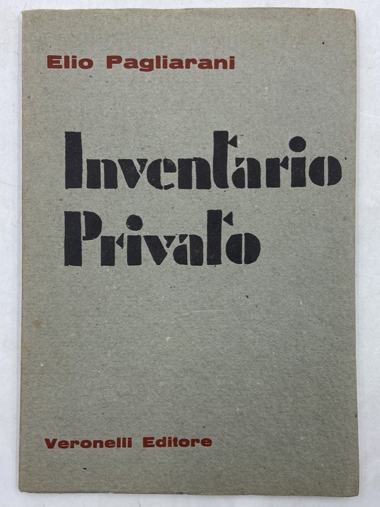 Brossura editoriale in cartoncino, cm 23x16, pp 46 (6), 5 disegni nero su fondo seppia, di Alberto Cesarotti. Prefazione di Giacomo Zanga, copertina e progetto grafico di Attilio Rossi. Collezione I Gemelli, numero 2. Esemplare arricchito d’un invio autografo dell’autore a Marcello Venturi. Edizione originale della seconda opera poetica di Pagliarani, esile canzoniere composto di ventuno componimenti in tre sezioni (Il primo foglio, A riporto, Totale S.E. & O.). Di maggiore asciuttezza formale rispetto agli sperimentalismi degli anni successivi, queste poesie d’un amore breve e infelice espongono già le caratteristiche proprie dei più celebri romanzi in versi: l’ambientazione metropolitana, la Milano industriale del boom economico, la società capitalista, il registro colloquiale; consonanza resa esplicita dalla citazione, nel finale di questa silloge, di alcuni versi da La ragazza Carla, allora ancora inedito per burrasche editoriali. Con gli anni ’60 Pagliarani vide pubblicato La ragazza Carla sulle pagine del Menabò, fu inserito da Alfredo Giuliani nella fondamentale antologia I nuovissimi, prese parte al Gruppo 63; nonostante l’affermazione del poeta, Inventario privato non conobbe ristampe. Gambetti-Vezzosi, p. 606: «Non comune e molto ricercato».
