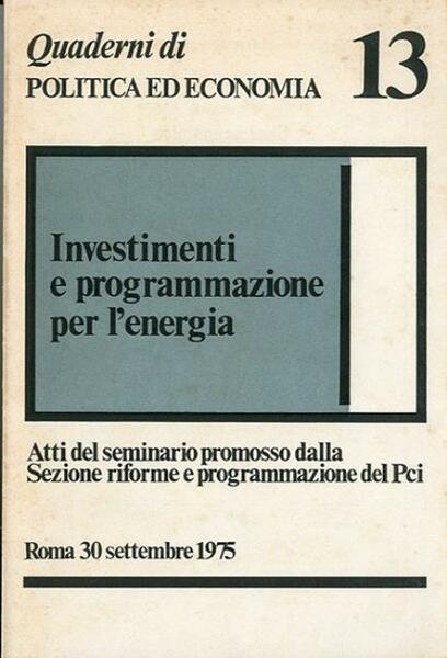 Investimenti e programmazione per l'energia. Atti del seminario promosso dalla Sezione riforme e programmazione del PCI. Roma, 30 settembre 1975.