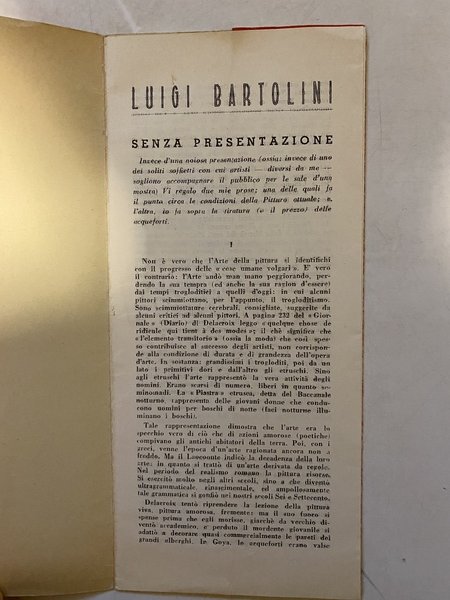 Con due prose di Luigi Bartolini una circa la condizione della Pittura attuale l’altra sulla tiratura delle acqueforti