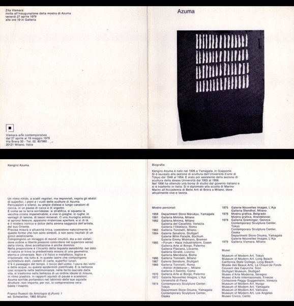 Invito/brochure mostra KENGIRO AZUMA. Vismara arte contemporanea. 27 aprile 1979