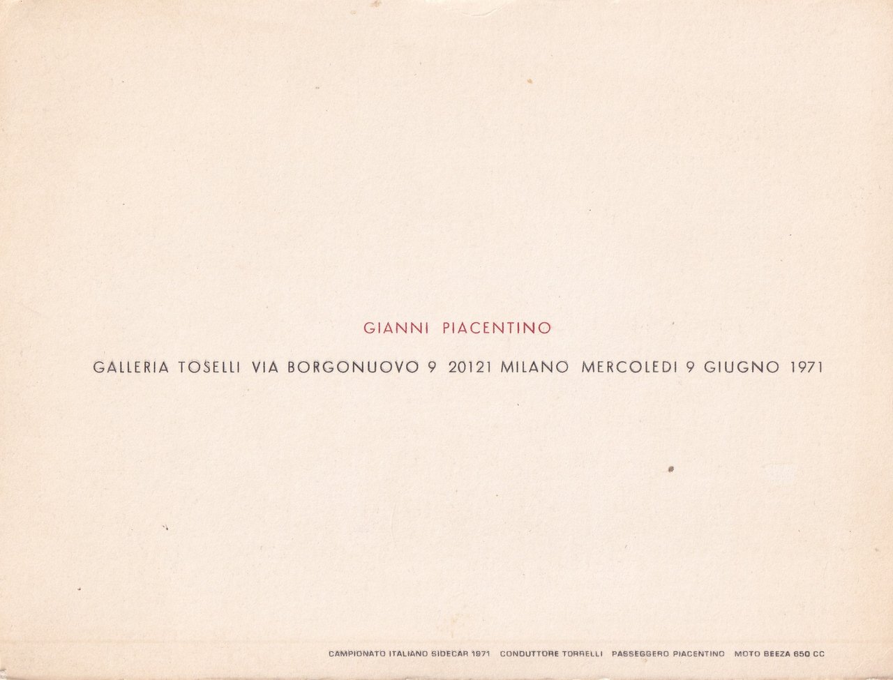 *Invito Gianni Piacentino - Galleria Toselli Milano. Giugno 1971