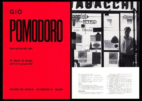*Invito Giò Pomodoro. Opere grafiche 1957 - 1964. 411°Mostra del Naviglio dall'8 al 18 gennaio 1965. Testo di Guido Ballo