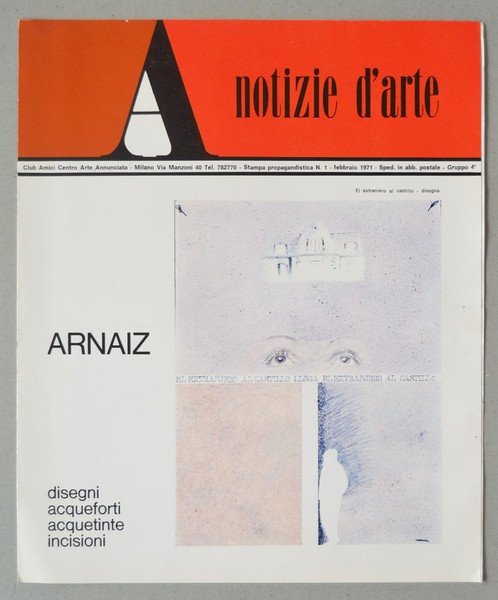 *Invito mostra ARNAIZ "disegni acqueforti acquetinte incisioni". Club Amici Centro Arte Annunciata - Milano febbraio 1971