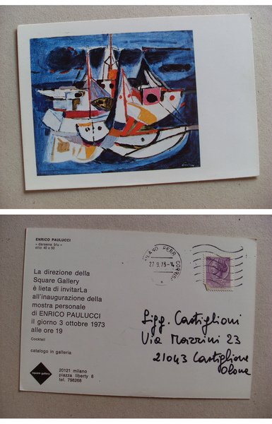 Invito mostra ENRICO PAULUCCI "darsena blu"1973. Square Gallery MILANO