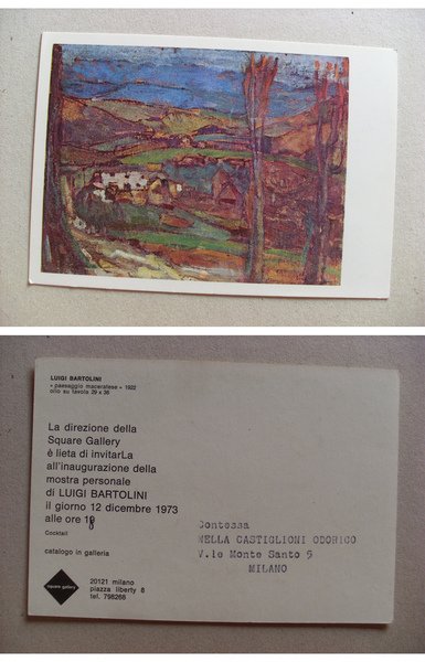 Invito mostra LUIGI BARTOLINI "Paesaggio maceratese"1973. Square Gallery MILANO