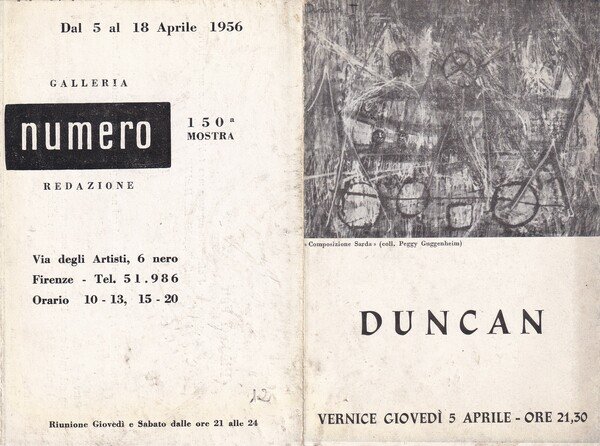 Invito mostra n.150 di Joseph DUNCAN 1956 - Galleria NUMERO
