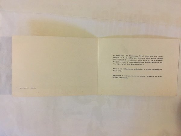 Invito pieghevole serigrafato 13 x 18 cm. dell'esposizione a Palazzo Strozzi Firenze dal 6 febbraio 1963