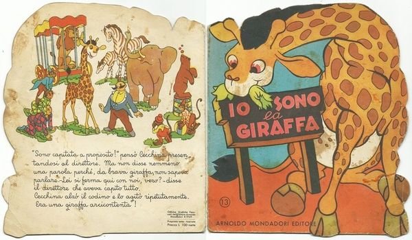 Illustrazioni a colori a tutte le pagine di Iris. Arnoldo Mondadori Editore - Verona, 1949. Brossura editoriale sagomata con tracce d'uso alle copertine e qualche macchiolina del tempo (come da foto). Interno molto Buono. 20x22,5; pp.8 non numerate. Molto Raro, Buono stato. ,