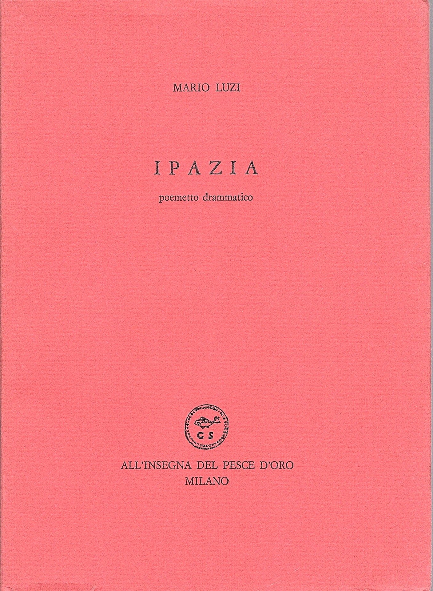 In-16° (17.5x13 cm), pp. 45, (3), brossura editoriale rossa a risvolti, titoli in nero al dorso e al piatto anteriore. Quaderni di poesia contemporanea, 2. Ottimo esemplare (n° 625/1000). Prima edizione. Azione drammatica di Luzi ispirata alla figura di Ipazia, la celebre matematica e filosofa neoplatonica alessandrina uccisa in nome dell'oscurantismo e del fanatismo religioso, tornata di grande attualità all'inizio del nuovo millennio dopo un fortunato film di Alejandro Amenábar. Cfr. Gambetti-Vezzosi, p. 471; Spaducci, p. 166.