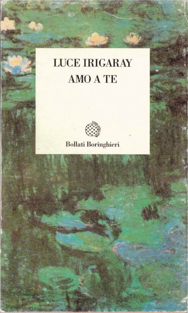 Luce Irigaray, Amo a te. Verso una felicità nella Storia, Bollati Boringhieri, Torino 1993, prima ed., pp. 156, cm 19, br. ed. con sovraccoperta. Collana Temi, vol. 31. Titolo dell’opera originale: J’aime à toi. Esquisse d’une felicité dans l’Histoire. Traduzione di Pinuccia Calizzano. Leggere tracce d’uso alla sovraccoperta, qualche sporadica sottolineatura a lapis, lievissima ingiallitura della carta, per il resto ben conservato.