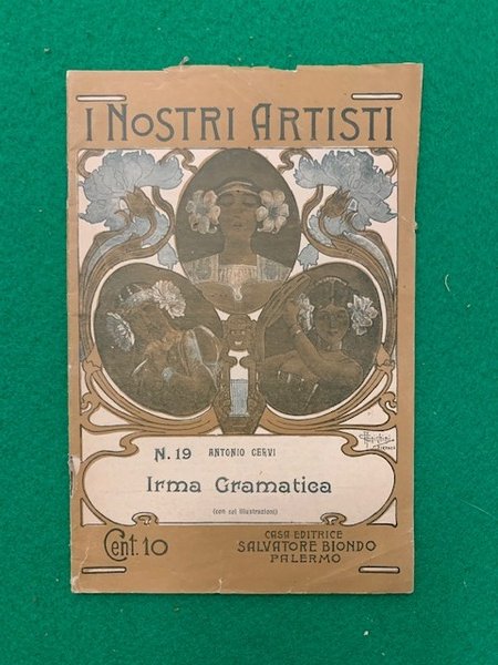 In 12°; 23, (1) pp. Brossura editoriale illustrata con titolo entro ricca cornice liberty. In buone-ottime condizioni di conservazione. Prima edizione di questa monografia, uscita nella collana "I Nostri Artisti" n. 19, dedicata alla celebre attrice fiumana, Irma Gramatica, all'anagrafe Maria Francesca Gramatica (Fiume, 25 novembre 1869 - Tavarnuzze, 14 ottobre 1962) che fece parte della compagnia della Duse e di Ermete Zacconi. Fu la prima Mila di Codro nella Figlia di Jorio, che Gabriele D'Annunzio aveva scritto apposta per la Duse e che questa, ammalata, non poté portare sui palcoscenico. Prima edizione.