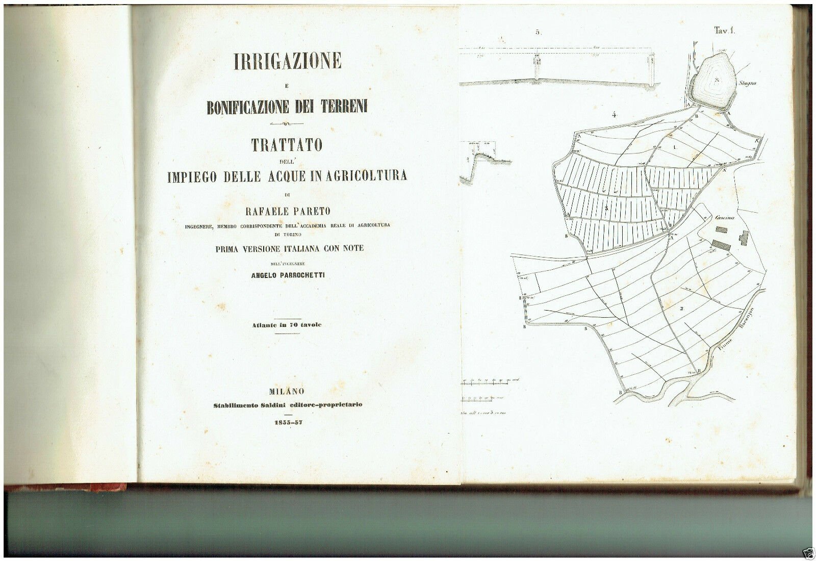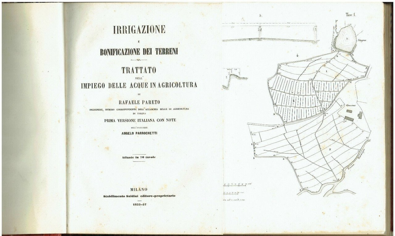 Irrigazione Bonificazione Terreni Trattato Raffaele Pareto 70 Stampe Milano di Rafaele Pareto