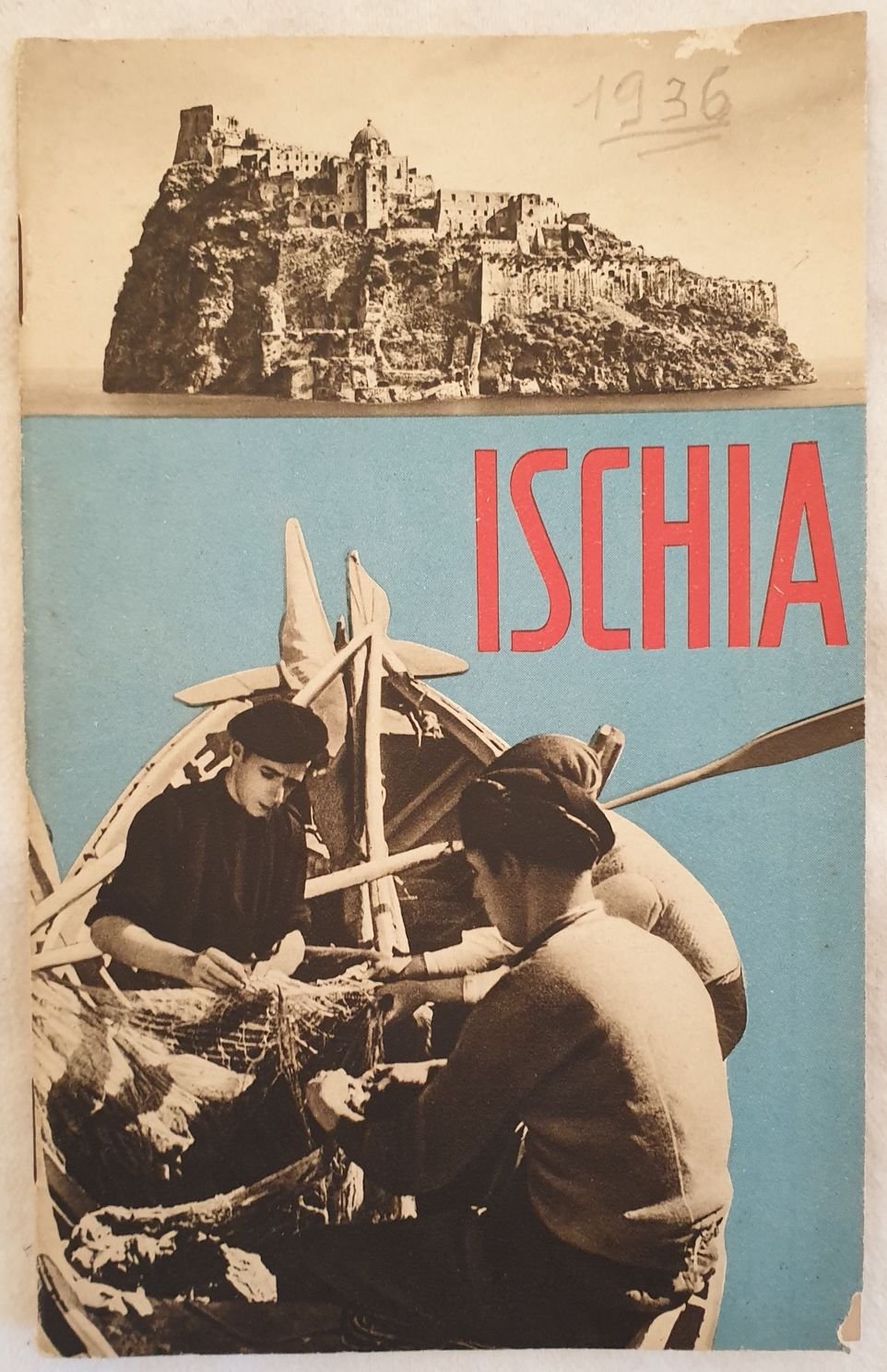 Interessante pubblicazione Enit del 1936 sull'isola di Ischia. Testo in lingua farncese. All'interno storia e descrizione dellisola, della tarversata da Napoli a Ischia. Numerose foto in bianco e nero di varie zone tra cui Castello Aragonese, Porto, strada attraverso la pineta, terrazze e giardini, case dei pescatori, spiaggia del porto, Pineta di Villa Cortese, Casamicciola, Lacco Ameno, Forio, Barano, Monte Epomeo ecc. In ottime condizioni. Copertina editoriale in ottime condizioni generali con lievi usure ai margini e dorso. Legatura in buone condizioni. All'interno le pagine si presentano in ottime condizioni con rare fioriture. In 8. Dim. 20x13 cm. Pp. (32).Interesting Enit pamphlet of 1936 about the ISland of Ischia. Text in french language. Inside history and description of island, route from Naples to Ischia. Different balck and white photos between them Castello Aragonese, Porto, strada attraverso la pineta, terrazze e giardini, case dei pescatori, spiaggia del porto, Pineta di Villa Cortese, Casamicciola, Lacco Ameno, Forio, Barano, Monte Epomeo etc. In very good conditions. Editorial cover in very good conditions lightly worn in the extremities. Binding in good conditions. Pages in very good conditions with occasional foxings. In 8. Dim. 20x13 cm. Pp. (32).