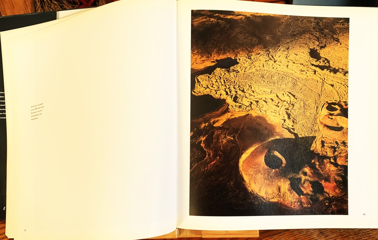 I ed. Testo in tedesco (übersetztungen (trad.): Thor Vilhjálmsson: Martin Rometsch - Ari Trausti Gudmundsson: Helmut Hinrichsen). In-4 quasi quadro, pp. 108, cart., sovraccoperta illustrata (primo ed ultimo piatto, a colori: due vedute aeree dell'Islanda - primo risvolto: ritratto fotografico in b/n di Klaus D. Francke). Aerofotografie a colori e una carta in nero dell'Islanda con indicazione delle aree fotografate. Stato buono Inhalt (Vorvort; Thor Vilhjálmsson - Luftbilder - Die Feuerinsel mit dem eisigen Namen; Ari Trausti Gudmundsson (Aus dem Meer geboren - Kontinentaldrift - Gewaltige Lavamassen - Wie in Nordwesteuropa - Eiszeitskulpturen - Interludium - Ruhelose Erde - Schaukasten des Vulkanismus - Rahue Landchaft - Land des ewigen Eises - Gletscherläute - Goethermisches Eldorado - Weißes/ Weisses Gold - Wechselhaftes, aber mildes Klima - Sensible Flora und reiche Vogelfauna - Vom Land leben - Bauern und Jäger - Das weite Land - Modern und doch naturverbunden - Die Zukunft des Landes)- Biografie - Nachwort.