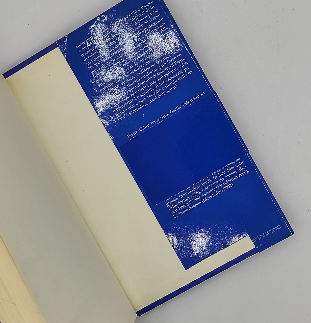 Seconda edizione (Ottobre 2003). La sovracopertina mostra lievi tracce d'usura sul bordo inferiore. Dall'aletta interna posteriore è stato ritagliato il prezzo (vedi foto).