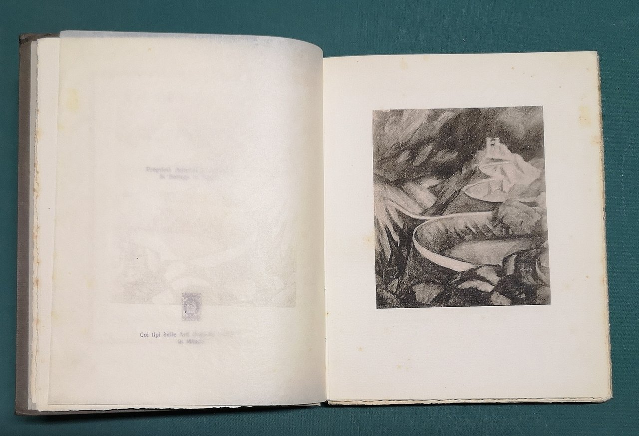 >in-16 quadrato, pp.114, (6), illustrato da 5 bellissime tavole f.t. di L.Scopinich, in bianco-nero, protette da velina. Solida leg. editoriale in m. perg., titolo impresso in oro sul piatto anter. Edizione originale, impressa in 610 esempl. su carta forte. Il presente non è numerato e porta il timbro ''Bottega di Poesia, Omaggio dell'Autore''.