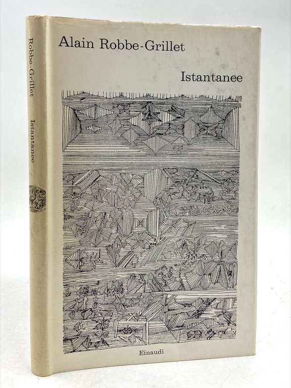 Tela editoriale con sovraccoperta illustrata, cm 19.5 x 12.5, pp 75 (5). Collana I coralli, numero 180. Prima edizione italiana, con traduzione di Guido Neri, di Istantanés, apparso in originale l’anno precedente per la casa editrice diretta dall’autore, Les Éditions de Minuit; l’opera riunisce alcune brevi prose composte tra il 1952 e il 1962 in cui sono già espressi temi e poetica del Nouveau Roman.